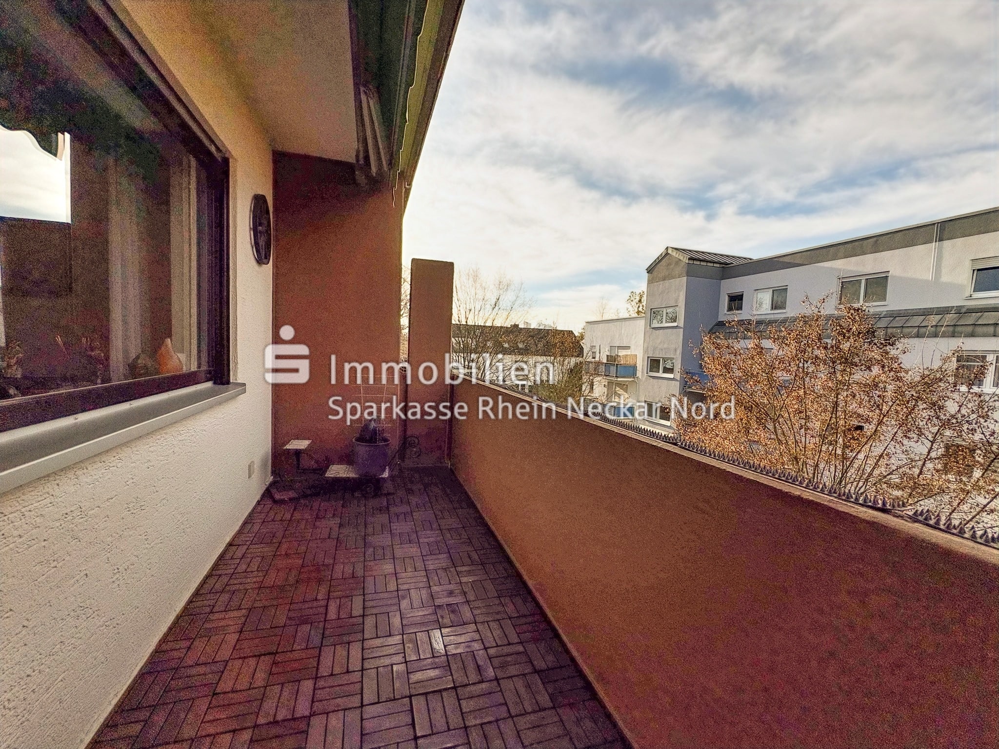 Ein Balkon erweitert den Wohnraum nach draußen und bietet eine angenehme Möglichkeit, frische Luft zu genießen oder den Feierabend entspannt ausklingen zu lassen.