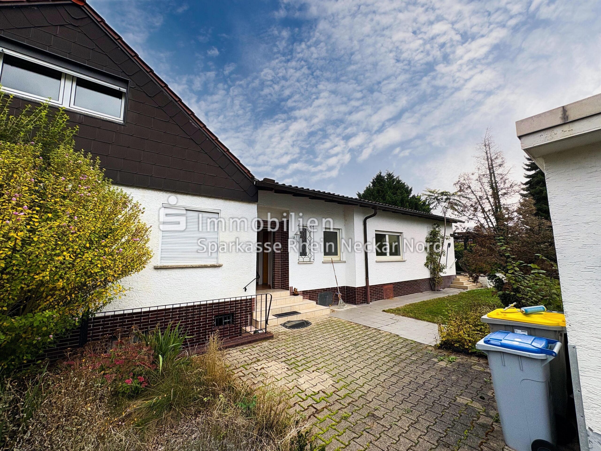 In Mannheim-Gartenstadt wird diese Doppelhaushälfte im Bungalowstil mit großem Grundstück angeboten. Die Immobilie wurde ca. 1969 erweitert und verfügt über eine Wohnfläche von rund 110 m².