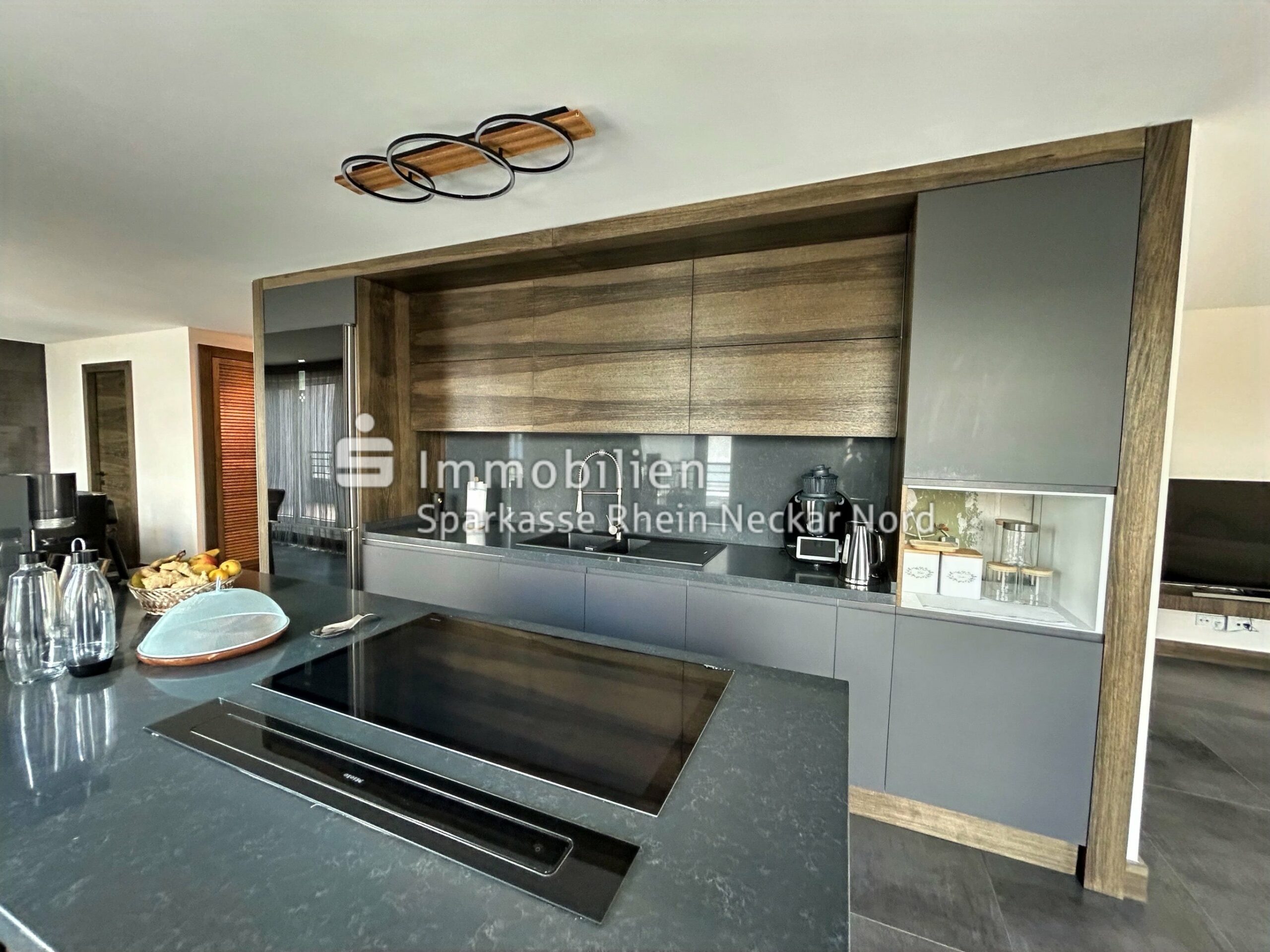 Die moderne Küche mit zentraler Kochinsel ist nicht nur optisch ein Highlight, sondern auch funktional durchdacht. Sie verbindet sich perfekt mit dem Ess- und Wohnbereich und öffnet sich über bodentiefe Fenster zur Terrasse. Das sorgt für viel Tageslicht – und noch mehr Atmosphäre.